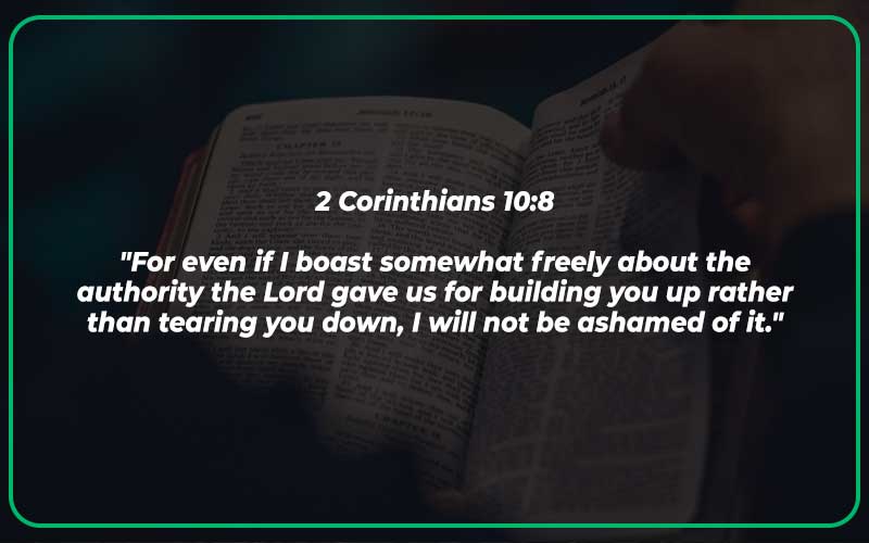 “For even if I boast somewhat freely about the authority the Lord gave us for building you up rather than tearing you down, I will not be ashamed of it.”
