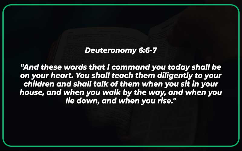 This verse emphasizes the importance of passing down God’s instructions to the next generation. It calls for intentional and consistent teaching of God’s Word, not just formally, but through everyday life experiences.