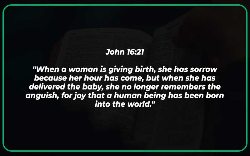 “When a woman is giving birth, she has sorrow because her hour has come, but when she has delivered the baby, she no longer remembers the anguish, for joy that a human being has been born into the world.”