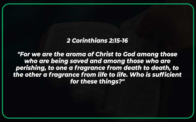 “For we are the aroma of Christ to God among those who are being saved and among those who are perishing, to one a fragrance from death to death, to the other a fragrance from life to life. Who is sufficient for these things?”