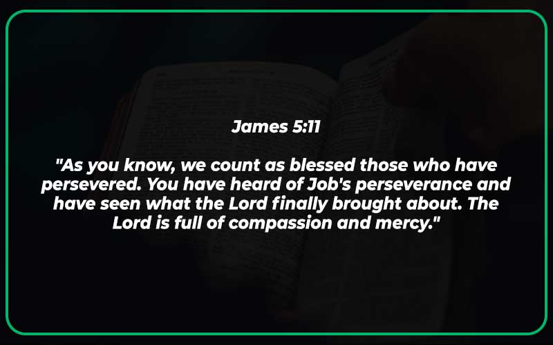 The example of Job’s perseverance in the midst of trials is used to demonstrate the compassion and mercy of God. Even in the face of intense suffering and loss, God does not abandon us but continues to show us His grace and mercy.