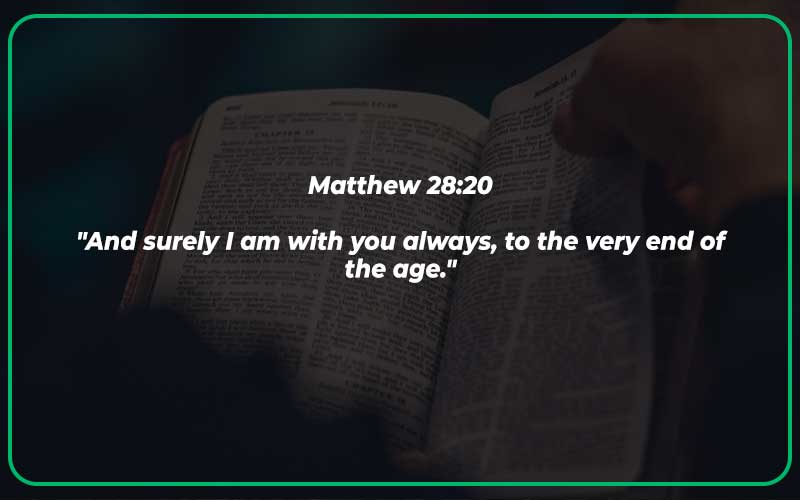 Loneliness may make us doubt God’s presence in our lives, but this verse affirms His eternal companionship. Jesus promises to be with us always, until the very end of the age. In every season of our lives, whether joyful or challenging, we can find solace in the fact that we are never alone. His constant presence brings comfort, guidance, and the assurance that we are deeply loved.