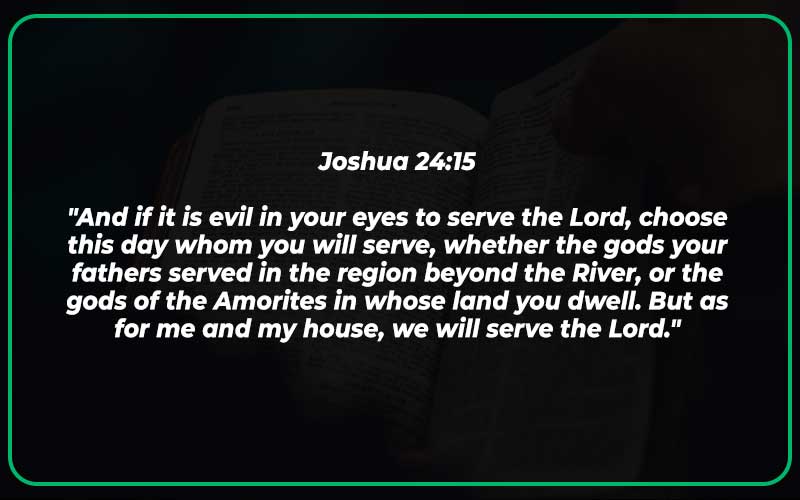 “And if it is evil in your eyes to serve the Lord, choose this day whom you will serve, whether the gods your fathers served in the region beyond the River, or the gods of the Amorites in whose land you dwell. But as for me and my house, we will serve the Lord.”