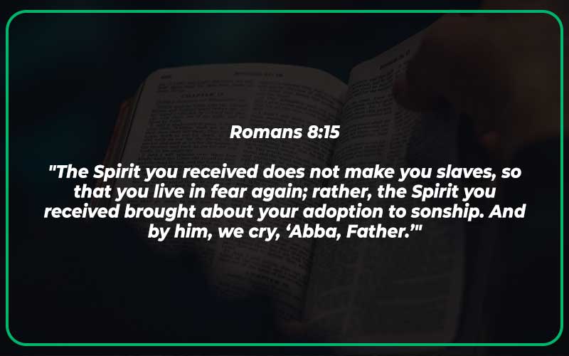 This verse highlights the transformation that occurs within our relationship with God through the indwelling of the Holy Spirit. It assures us that we are no longer slaves to fear but have been adopted as children of God. Through the work of the Holy Spirit, we can now approach God as our loving Father, experiencing a deep and intimate relationship with Him.