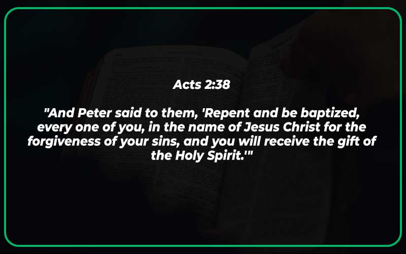 “And Peter said to them, ‘Repent and be baptized, every one of you, in the name of Jesus Christ for the forgiveness of your sins, and you will receive the gift of the Holy Spirit.'”