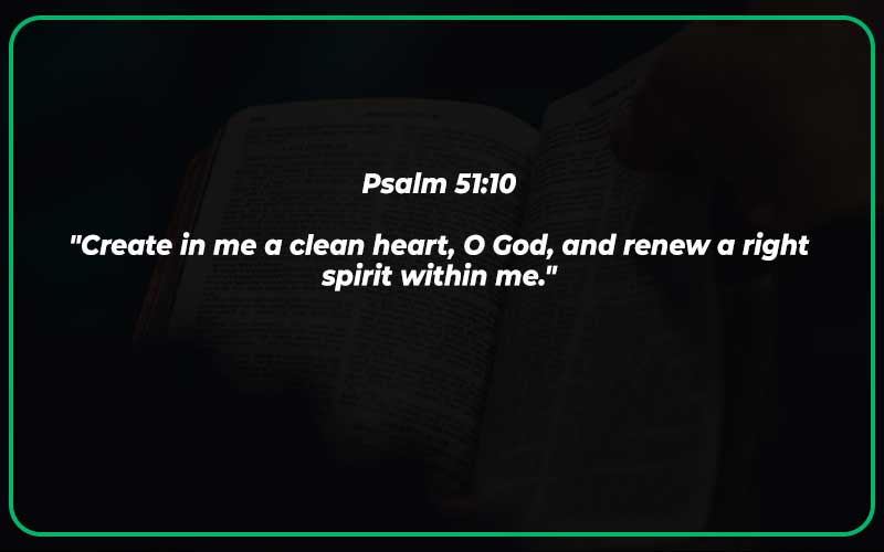 Psalm 51:10 reminds us of the transformative power of repentance. It emphasizes the need for a complete change of heart and spirit towards God, inviting Him to renew and restore us to a right relationship with Him.
