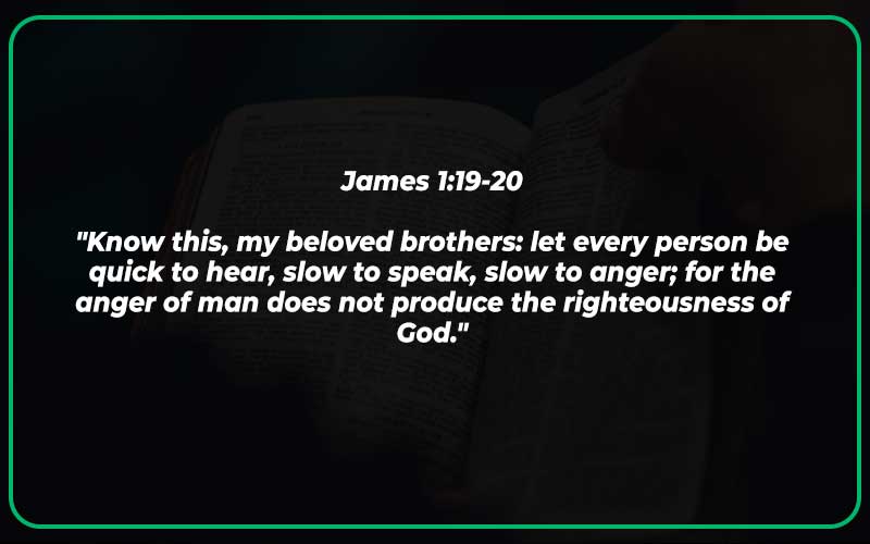 This verse encourages self-control in the area of communication, urging believers to listen more than they speak, and to exercise patience in the face of anger. It reminds us that being slow to anger and quick to listen is a hallmark of righteousness.